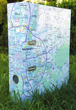 Ein Ordner mit dem Stadtplan von München - München auf einem Blick. Ein Kartenprodukt in Form eines Ordners. Das mache ich auch für Sie zu anderen Städten.