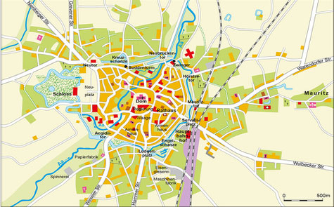 Die Entstehenung einer Stadt. Hier ein Zeitblatt aus der Stadtentwicklung Münster im Jahre 1875. Aus der Serie "Münster in 1000 Jahren auf 10 Karten".
