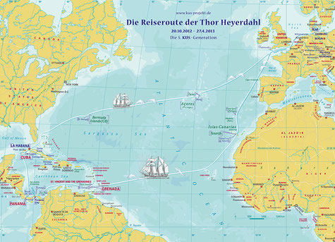 Den Verlauf eines besonderen Projektes der Universität Erlangen-Nürnberg - Klassenzimmer unter Segeln (KUS) - mit der Thor Heyerdahl habe ich für eine Projektveranstaltung als Wandkarte
