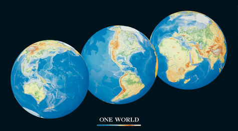 Ein Teil einer Weltkarte auf einer Faltmappe, z.B. für Kongresse, Tagungen, Seminare, Urlaube - mit dem jeweils relevanten Gebiet.