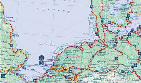 Europas 15 EuroVelo-Routen der European Cyclist Federation (ECF) auf einer Wandkarte 1:5 Mio.